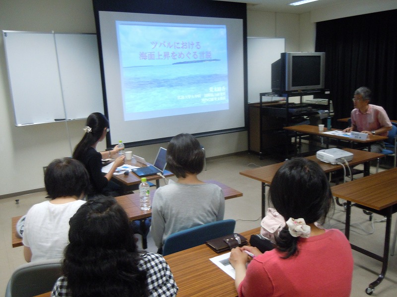 報告後、フロアとの間で活発な質疑応答が行われた。質疑応答の中で、①海面上昇の言説を、誰が利用したいのか、得をするのは誰なのか、外部との力関係の構造はどうなっているのか、②どういうメディアを通して、現地の人びとは言説に触れるのか、③国内の関心として、身近な環境破壊に対してどのような関心が芽生えているのか、どういった活動がなされているのか、④福島原発事故でも見られるように、別の目的のために言説が利用され、現地には不安だけが残されている、⑤ツバルの環境を考えるのなら、むしろ、取材などで訪れない方が良い、などの質問・感想が出され、意見交換が行われた。