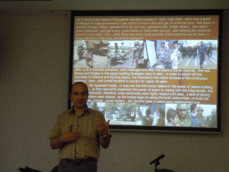 【報告タイトル】「The 4'S Peace building in Iraq: Status, Scope, Strategies, Steps(「イラクの平和構築における4つのS: 情勢、範囲、戦略、歩み」