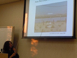 アムダリア川流域での人間活動と灌漑農業の歴史をふまえ、現在のこの河川の日別流量データによる十分な裏付けを用いつつ、多国間の水利用に関する国際的制度の枠組み、およびこれまでの現地での取り組みが具体的経験にもとづいて開示されました。