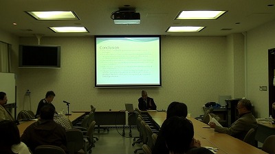 Next, Dr. Y.P. ADHIKARI(CNAS Executive Director) presented the sketch to the state building from the bottom-up approach under the deep discernment based on the results of his area studies for peace building process in Nepal.